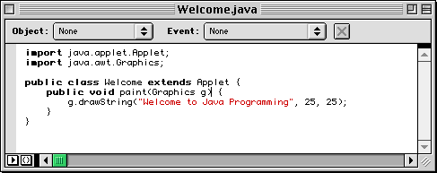 - Notice that we’re running an applet (rather than an application), but we haven’t created an HTML file with an applet tag. No problem, Visual Café took care of that and created an HTML file automatically for us. We never compiled the Java source code, but Visual Café took care of that too. The HTML file is loaded into the Applet Viewer, and the code executes. Once it’s all done, you should see: