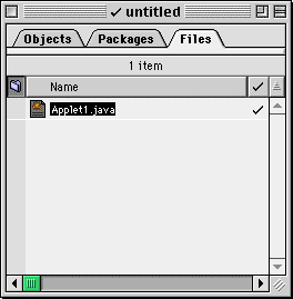 After closing the Applet1 window (not the untitled project window), click the Files tab of the project window. And then click the file icon next to "Applet1.java":