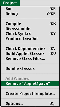 - Dump the automatically-created applet file by closing the window and removing the Applet1 file from the project.