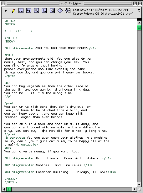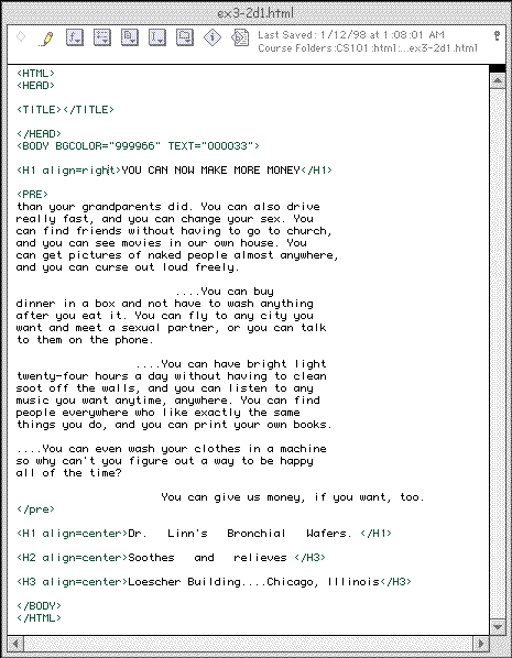 • <COMMENT>I hate this class.</COMMENT> interpreted by IE; other browsers display contents of the comment.