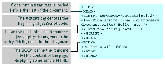 JavaScript Basics Despite the differences between client and server side JavaScript, there are some basic similarities which Netscape calls "the Core Language" (sounds so important!)