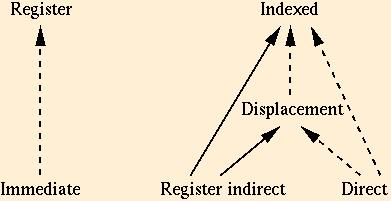 Make sure that you understand the precise meanings of the 10 main-memory/register addressing modes in Figure 2.5, and their uses. Figure 2.5 is a bit confusing, because it doesn't say which of the several addresses in each example illustrates the mode in question. Also, the names of modes sometimes mention the location being referenced and sometimes the location holding the address.Make sure that you resolve all the ambiguities.