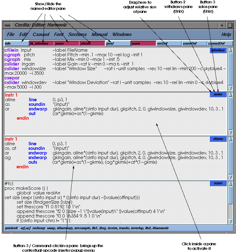 The CECILIA editor is optimized for Csound orchestra building/testing.
