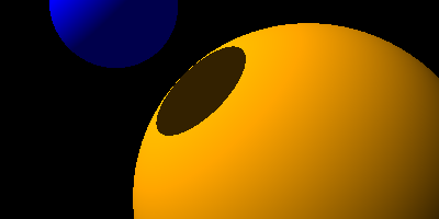 ;; diffuse-surf : symbol -> surface ;; return a non-reflective surface with the named color (define (diffuse-surf c) (make-surface (name->rgb c) (name->rgb 'black) 0)) (define test-sphere-1 (make-sphere (make-vec3 0 0 3) 1 (diffuse-surf 'red))) (define test-camera-1 (make-camera -5 200 200)) (define test-camera-2 (make-camera -2.5 400 200)) (define test-scene-1 (make-scene (make-rgb 0 0 0) (list test-sphere-1) (list (make-dir-light (v3-normalize (make-vec3 -1 1 -1)) (name->rgb 'white))) (make-rgb 0.2 0.2 0.2))) (define test-sphere-2 (make-sphere (make-vec3 1 0 5) 1 (diffuse-surf 'orange))) (define test-scene-2 (make-scene (make-rgb 0 0 0) (list test-sphere-1 test-sphere-2) (list (make-dir-light (v3-normalize (make-vec3 -1 1 -1)) (name->rgb 'white))) (make-rgb 0.2 0.2 0.2))) (define test-sphere-3 (make-sphere (make-vec3 1 -1 4) 2 (diffuse-surf 'orange))) (define test-sphere-4 (make-sphere (make-vec3 -1 1 2.75) 0.6 (diffuse-surf 'blue))) (define test-scene-3 (make-scene (make-rgb 0 0 0) (list test-sphere-3 test-sphere-4) (list (make-dir-light (v3-normalize (make-vec3 -1 1 -0.5)) (name->rgb 'white))) (make-rgb 0.2 0.2 0.3)))