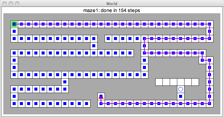 In this project you will implement an animated version of the A* search algorithm. A* is a classic Artificial Intellegence algorithm that is often used for puzzle solving and for pathfinding in computer games. You will use A* to find a path through a maze.