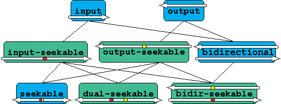 Each mode is represented by a mode tag, defined in the header <boost/iostreams/traits.hpp>. There are eight tags for the eight modes: input, output, bidirectional, input_seekable, output_seekable, seekable, dual_seekable and bidirectional_seekable.[1] As with standard library iterator category tags, the tag corresponding to a mode is convertible to each of the tags corresponding to modes which the first mode refines.