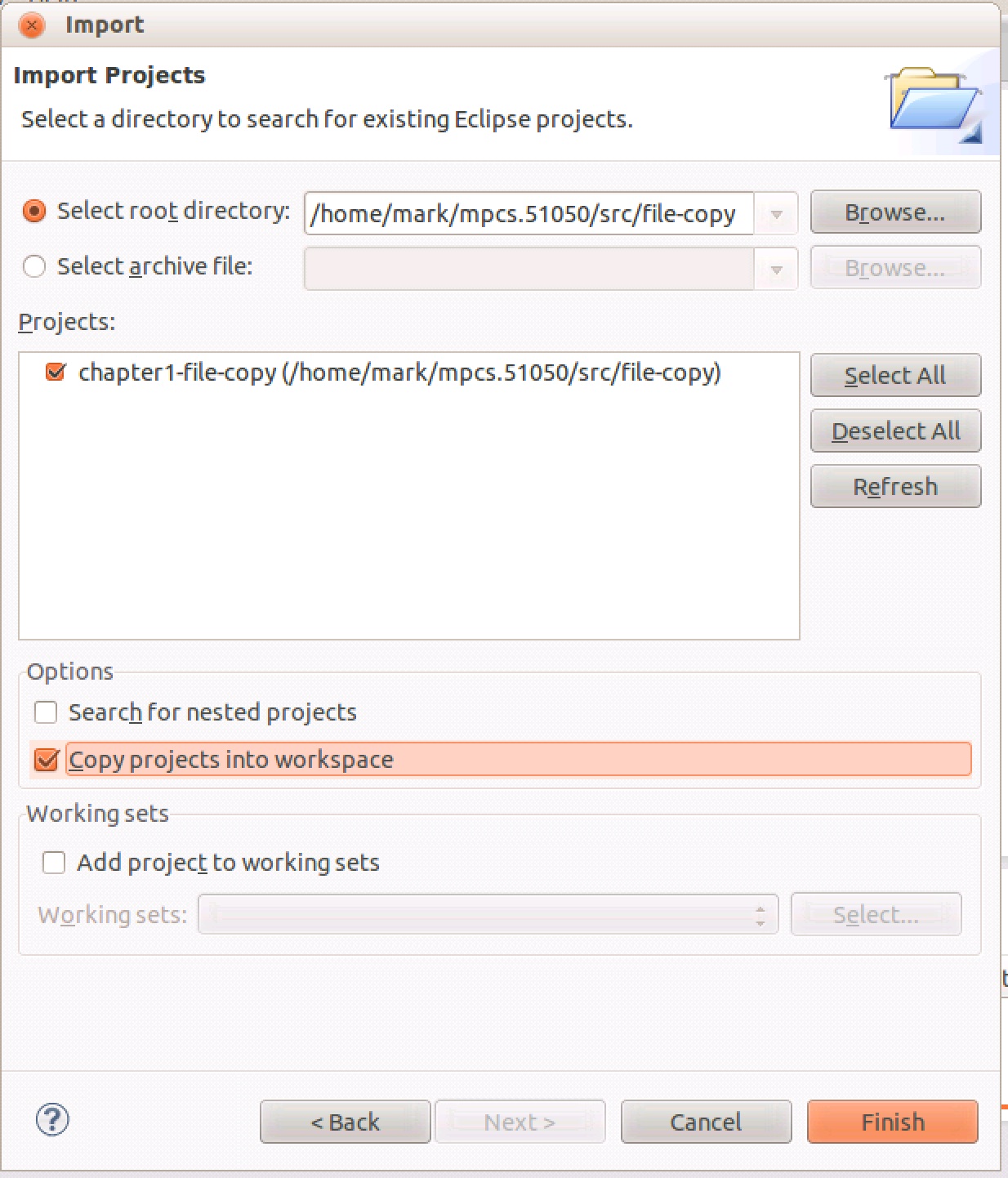 "Copy projects into workspace". Once your dialog looks like the