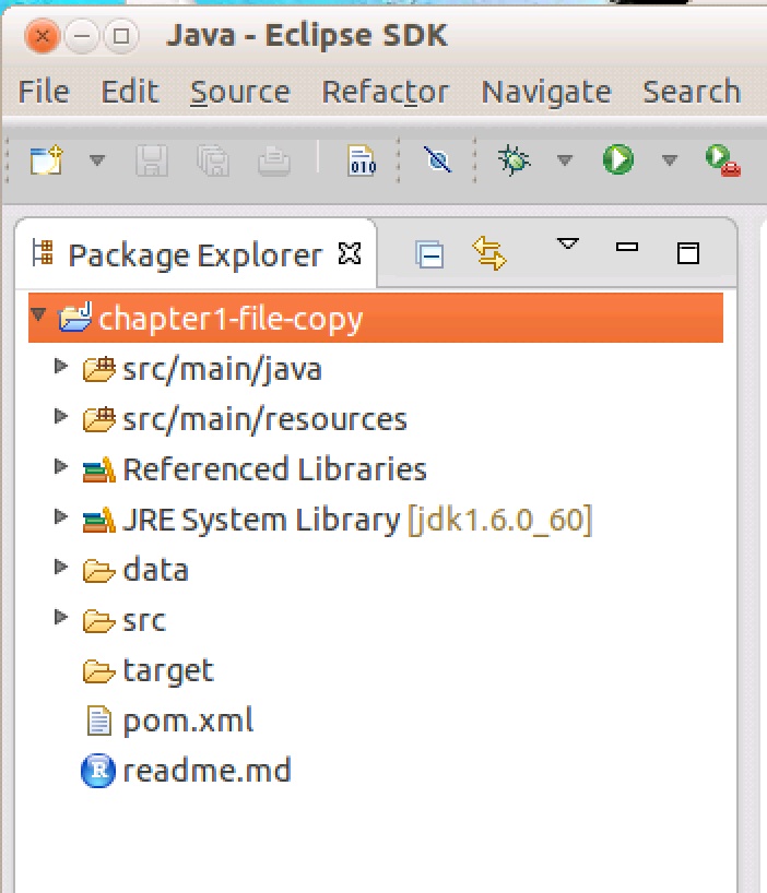 You should see the file-copy project appear in the Package Explorer in Eclipse:
