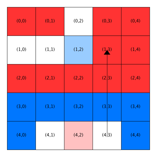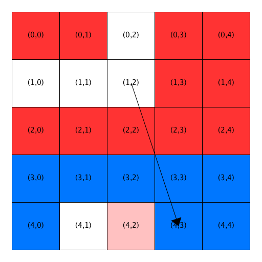 In this assignment, you will always process the grid in row major order. That is, you will use a doubly-nested loop in which the index variable in the outer loop starts at zero and is used to indicate the current row, and the index variable in the inner loop starts at zero and is used to indicate the current column.