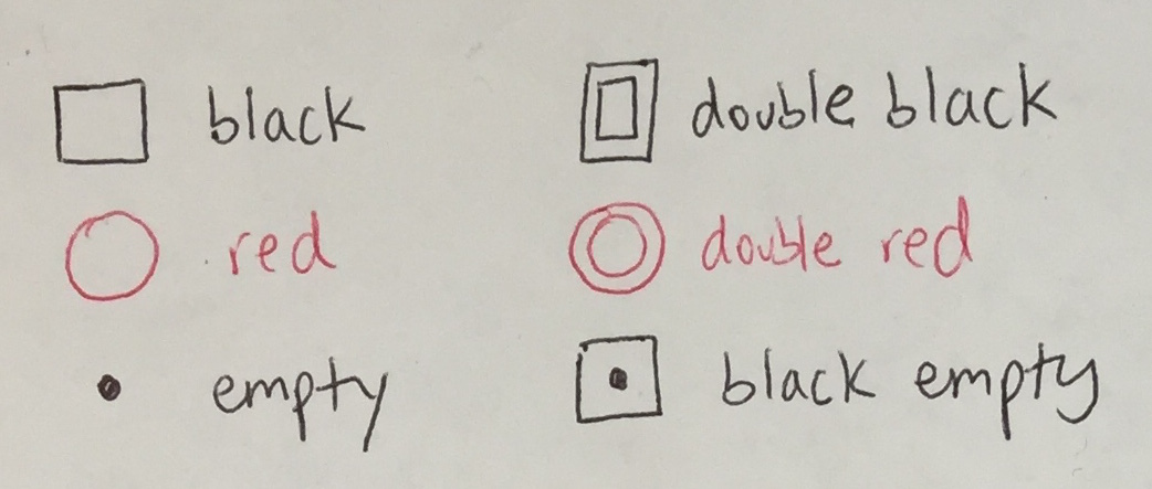 Deleting an element from a red-black tree is considerably harder than inserting one. Matt Might presents a deletion algorithm that extends the temporary-invariant-violation plus bubble-and-rotate approach for insertion. Today, we'll reformulate his approach using slightly different terminology and drawing conventions to match the ones we used last time. The code below is found in RedBlackDelete.elm