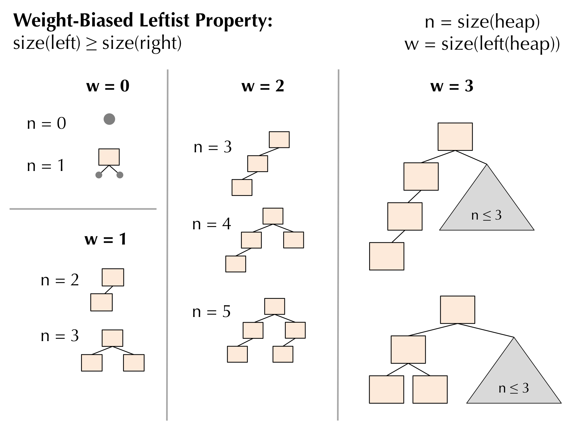 Work through w=0, w=1, and w=2, keeping track of weights w and sizes n. Come up with some kind of pattern or shorthand, so that you don't have to draw all of the w=3 ones — there may be a lot!