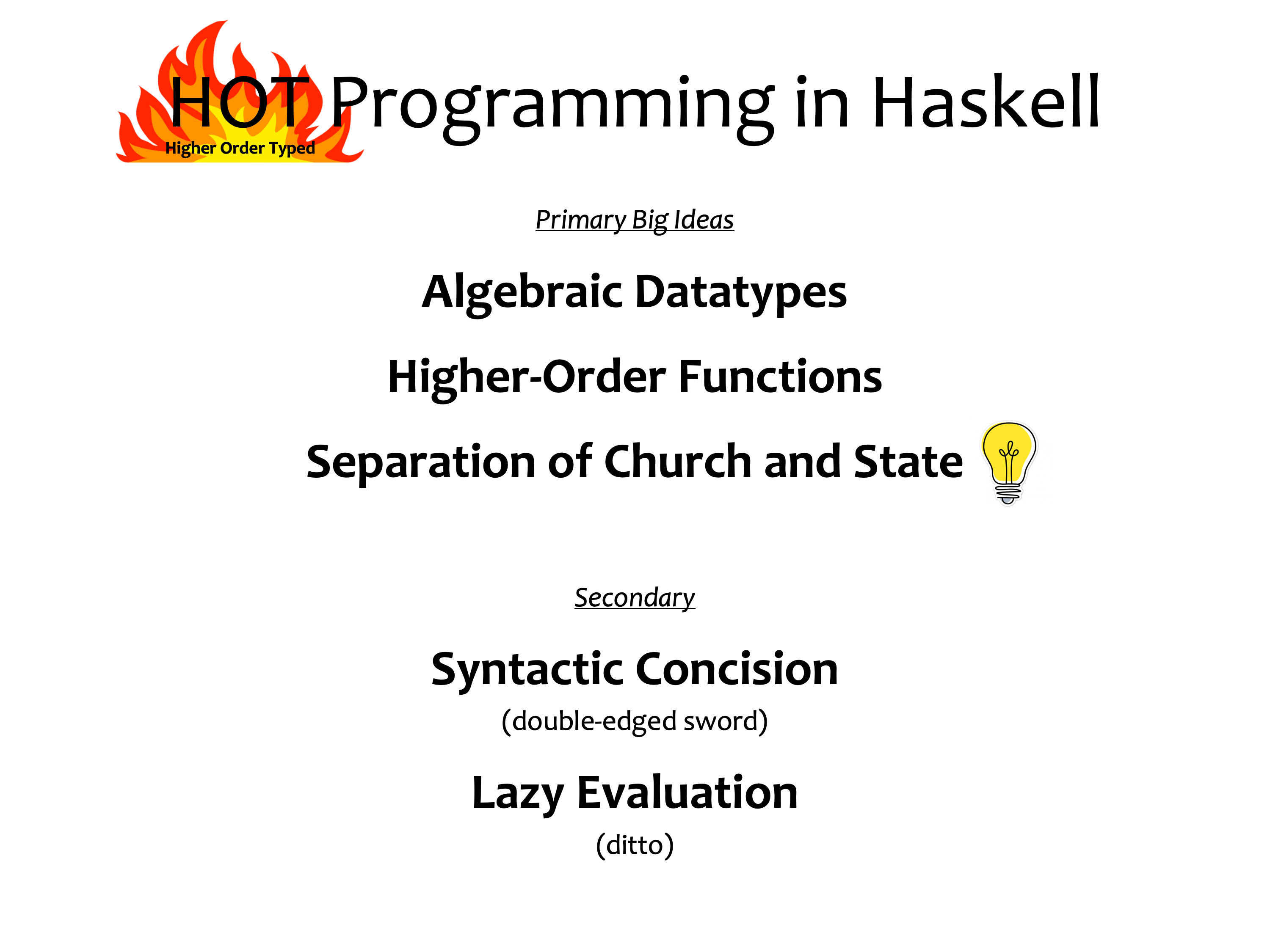 Our primary source is the book A Quarter of Haskell, by our very own Master Professor Stuart Kurtz.