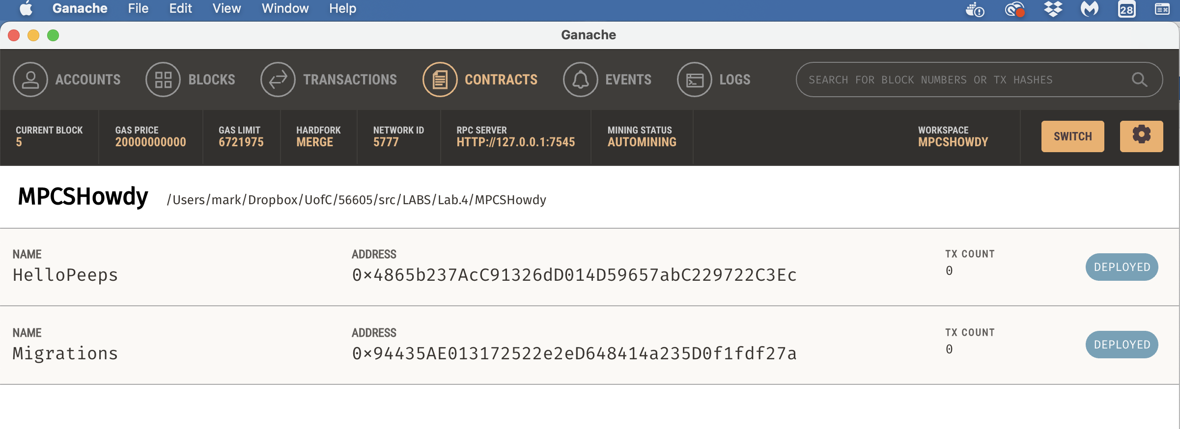 truffle in Lab 1) in our new ~/56605/src/LABS/Lab.4/MPCSHowdy
