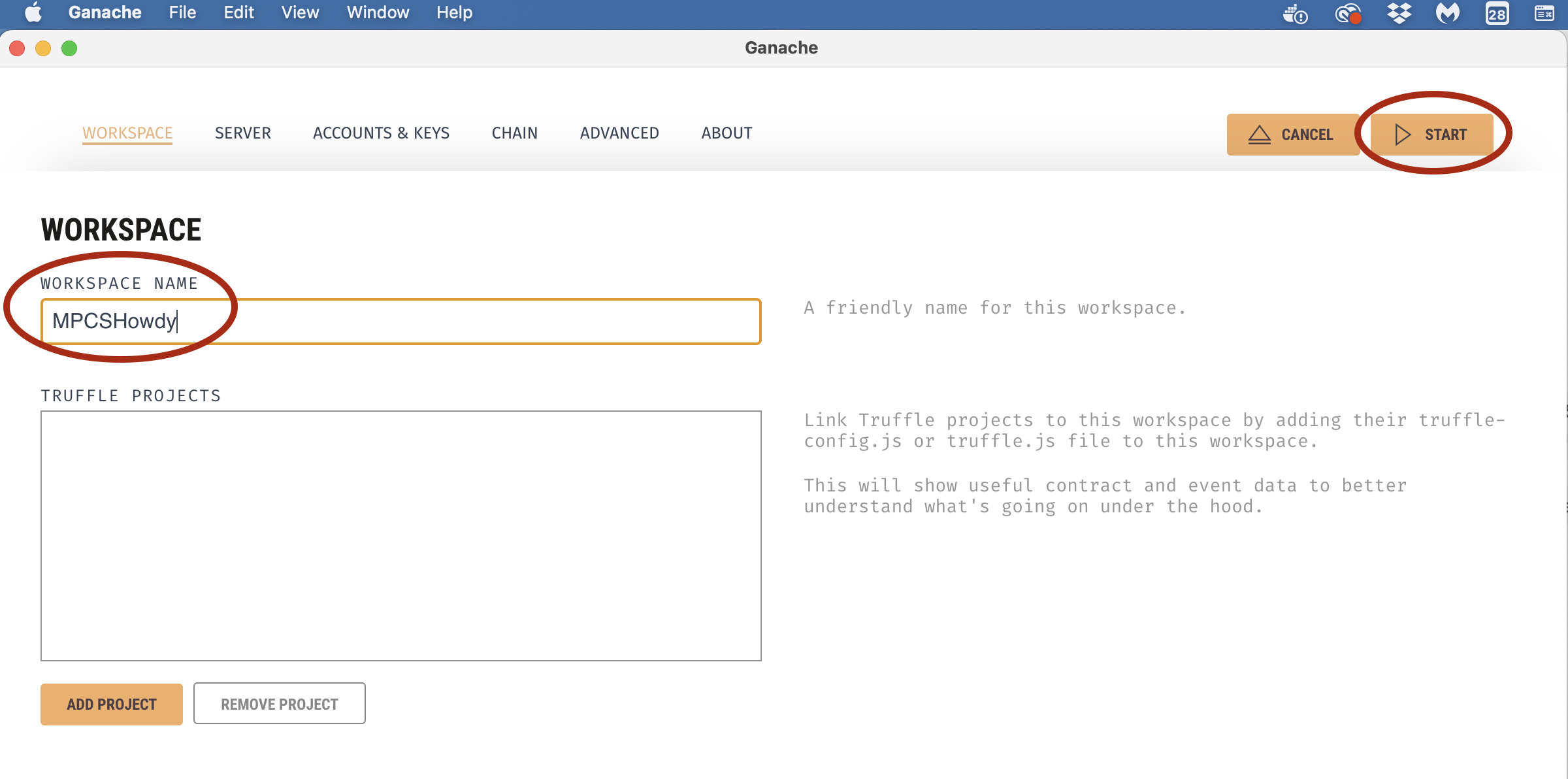 You are going to run an Ethereum blockchain (Ganache) and deploy your first smart contract onto it.
