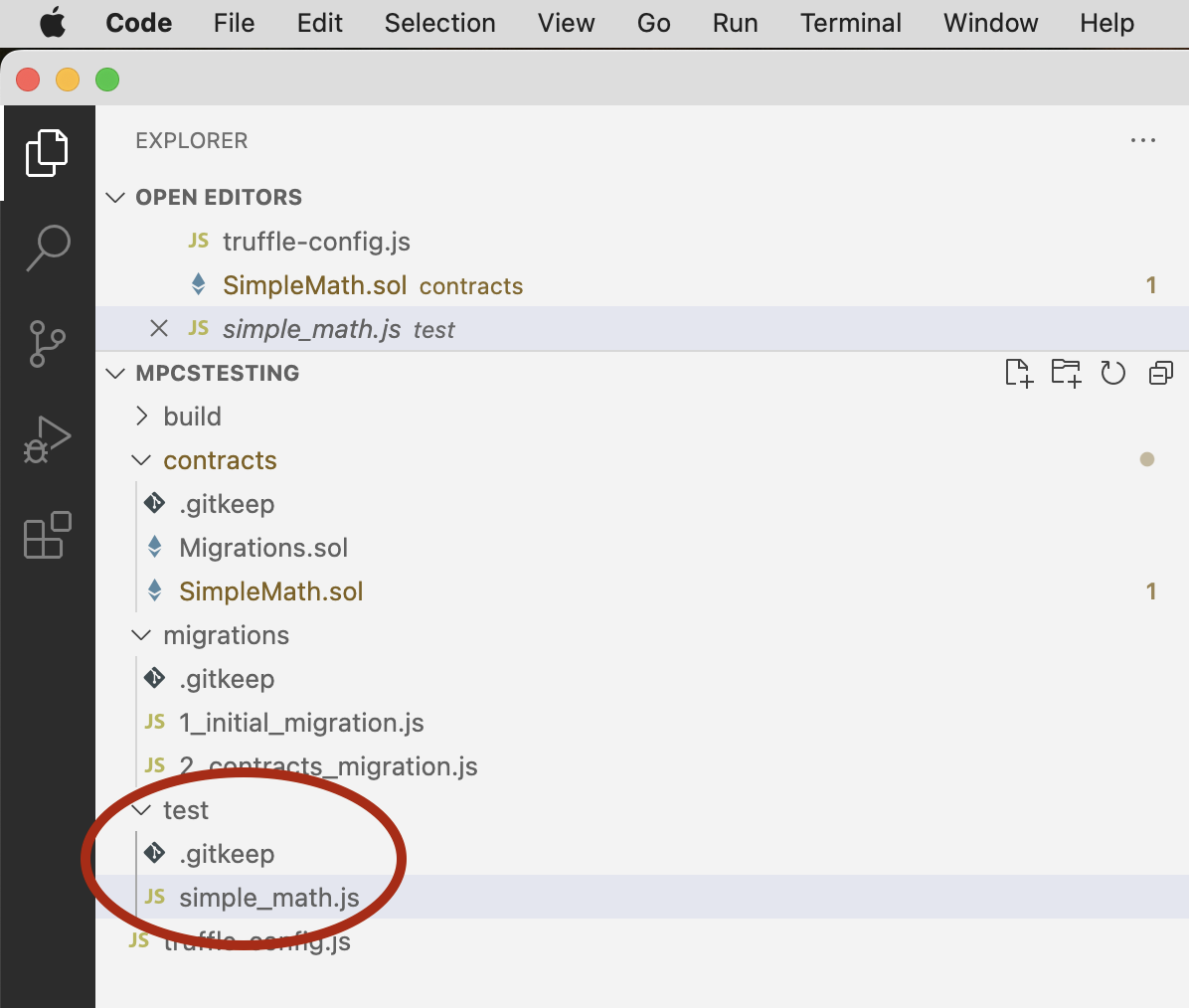 To start testing, let's use truffle to get us started.  In your MPCSTesting directory, use truffle to create a test: